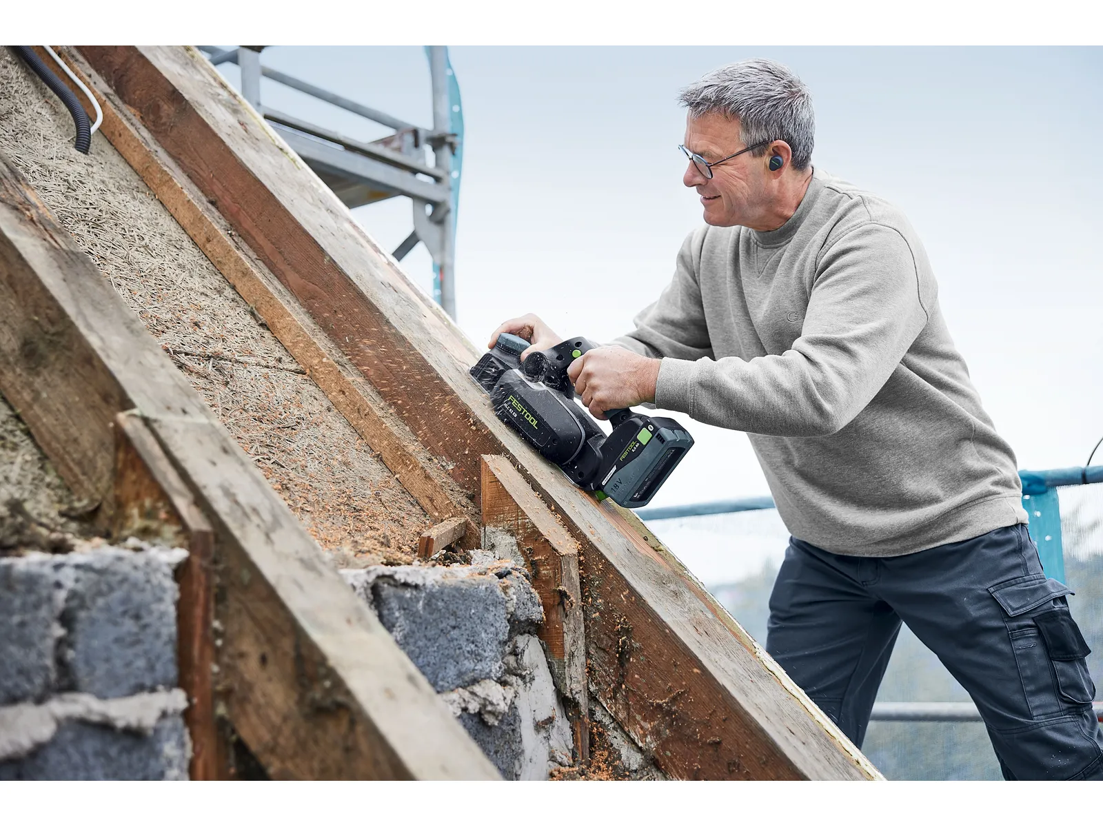 Den behändiga, batteridrivna hyveln HLC 82 är en pålitlig medhjälpare på bygget och i verkstaden när det handlar om snabba anpassningsarbeten. Fasa av bjälkar, göra kantövergångar på väggar med trästomme, falsa dörrar, anpassa golvlister och täcklister: med batterihyveln kan du jobba hur flexibelt som helst. Maximal prestanda: HLC 82 levererar bäst tillsammans med det kraftfulla Li-HighPower-batteriet– välj mellan 5,0 Ah eller 8,0 Ah för optimal effekt.