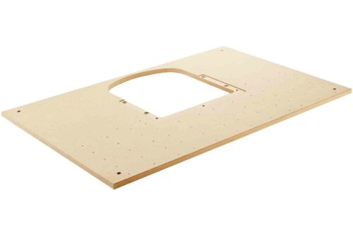 Hålplatta med urfräsning för stationär användning av kantlimmaren i multifunktionsbordet MFT i kombination med adapterplattan AP-KA 65. För små serier, raka kanter, friformselement och limning av fasade kanter, vinklar på 0–47°. Glidplattor för säker styrning av arbetsstycket via integrerade M4-muffar som enkelt skruvas på.